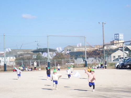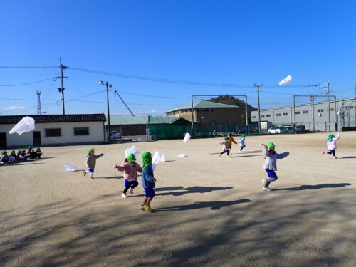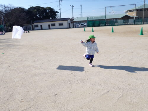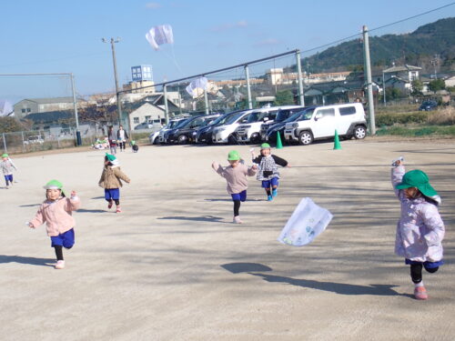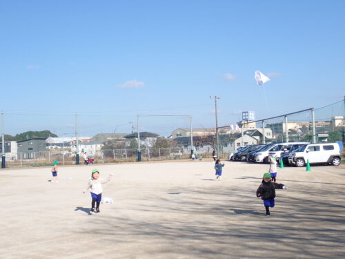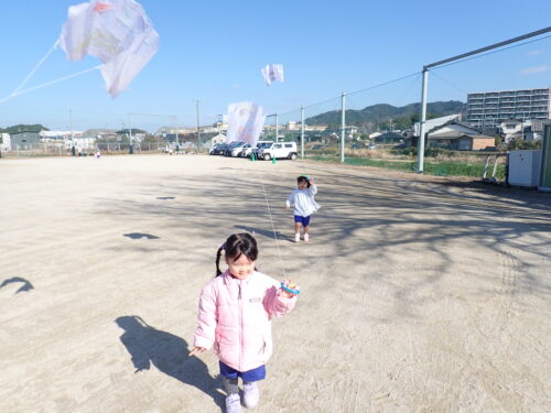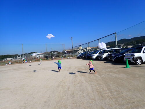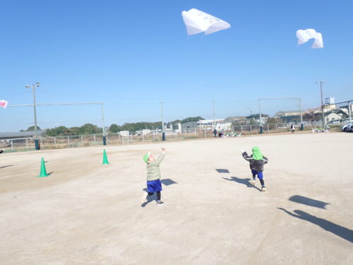 旅石グランドで思いきり駆け回り、上がっていく凧を見ながら楽しみました