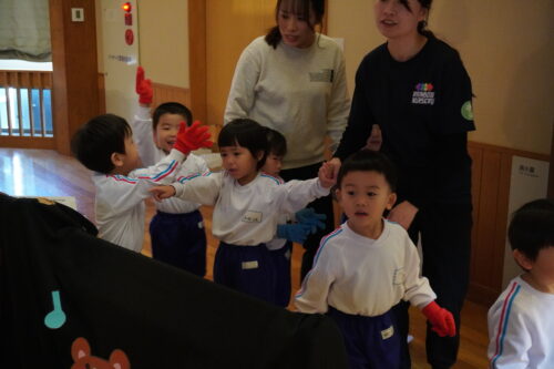 合奏の「どんないろがすき」では色んな手袋をつけて