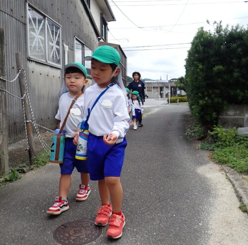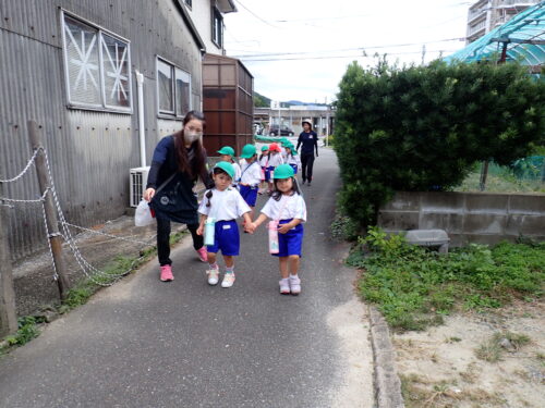 最近はお散歩をしていたので二人組で歩く事がとても上手になっています![]()