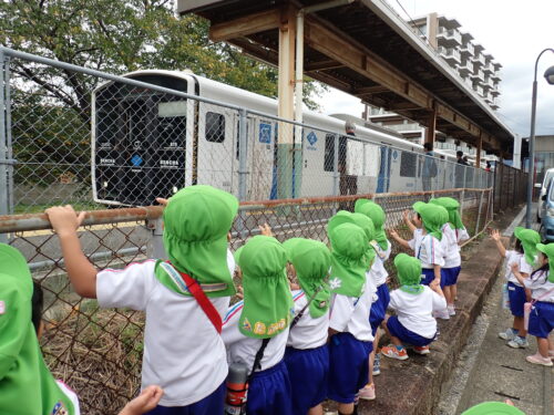 おやつを食べ終わったころ、ちょうど電車がやってきました🚃