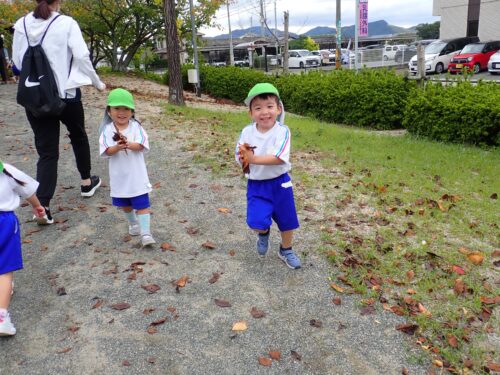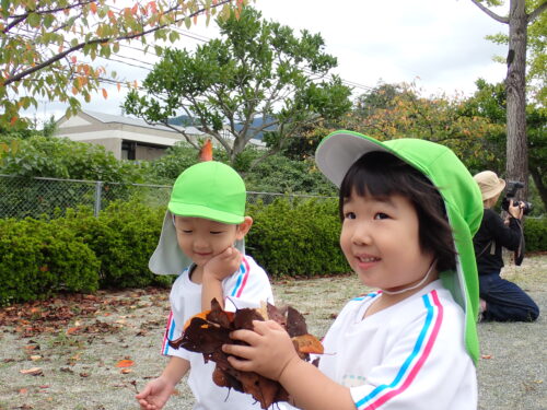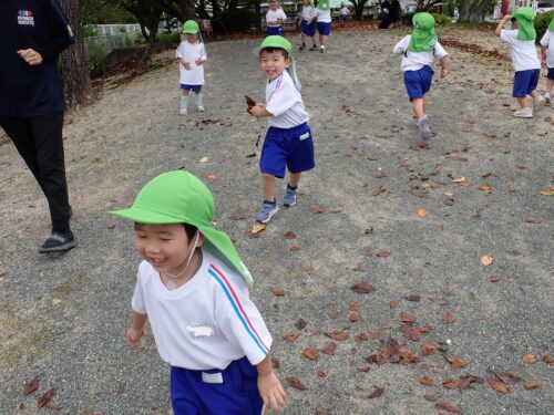 落ち葉シャワーや虫探し、駆け回ったりとみんなのとびっきりのかわいい笑顔がたくさん見られました😊