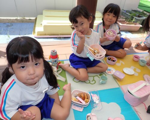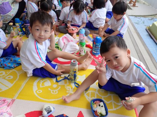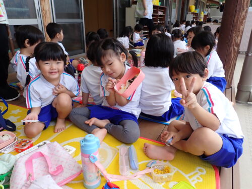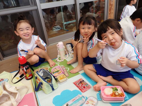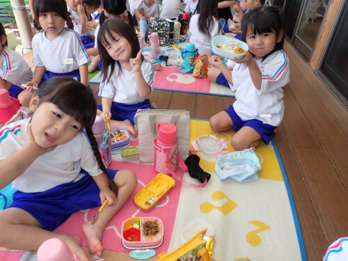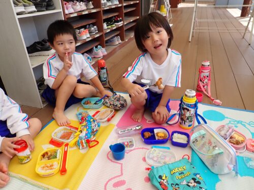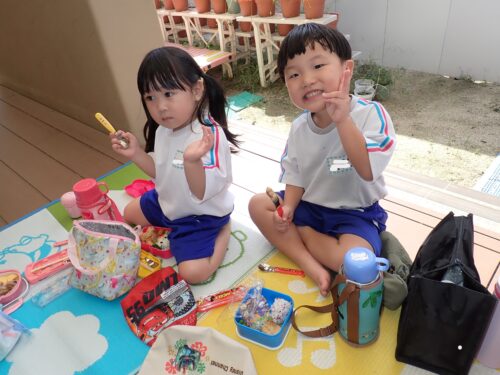 園に帰ってくると、お待ちかねのお弁当の時間🍱![]()