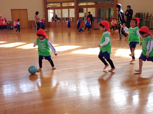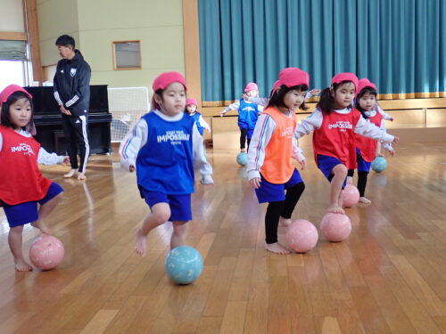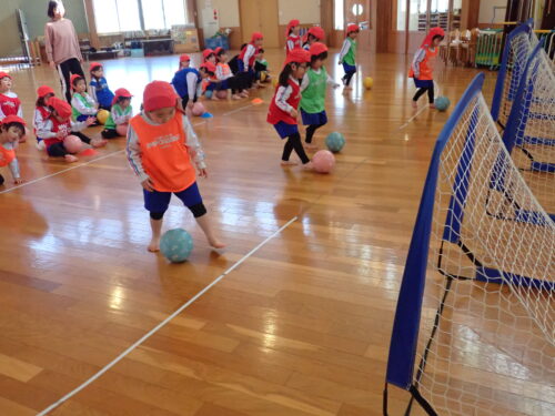 今回はそら組の子どもたちがサッカーの楽しさ、お友だちとボールを