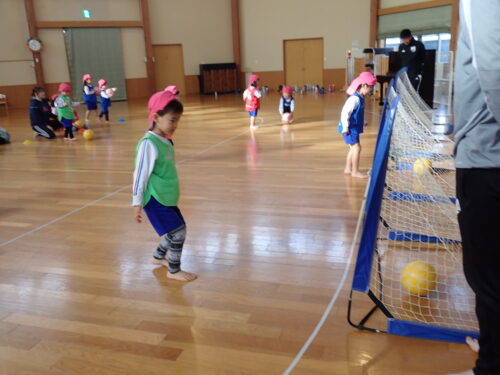 次は足でボールを蹴ってシュートの練習😊