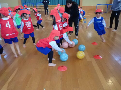 チームに分かれてボール運び😊