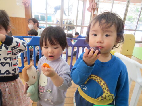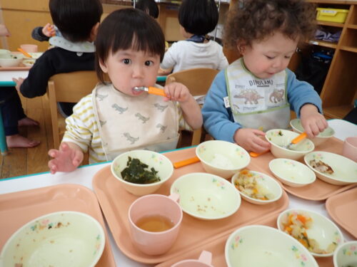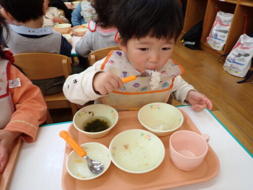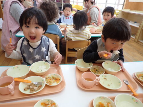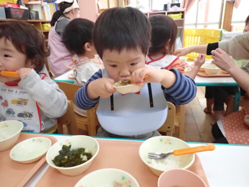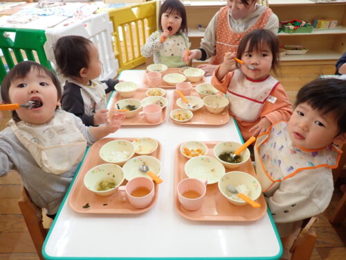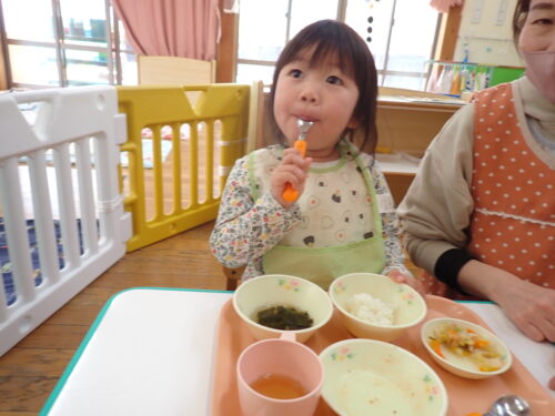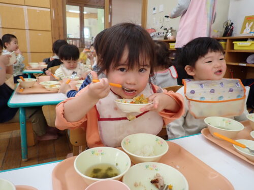 「おいしいね~」「これなんのお野菜かな~」とおはなしを楽しみながら食べてま~す
