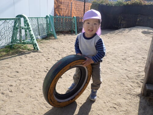 力自慢のお友達がタイヤを運んでますっ