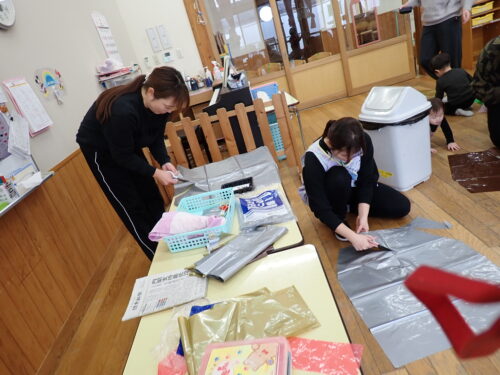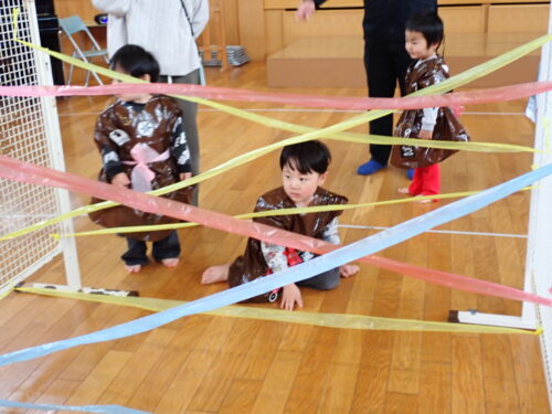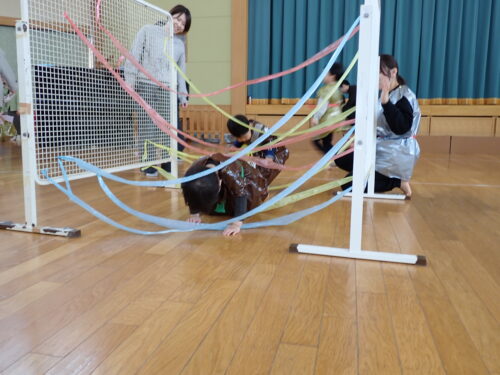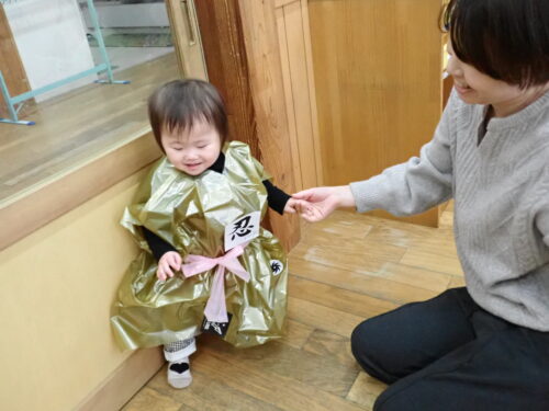 こだまぐみで、忍者の洋服を作ったりホールで忍者の修行をしたり