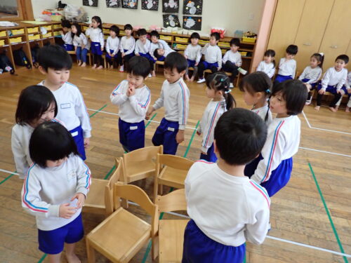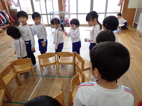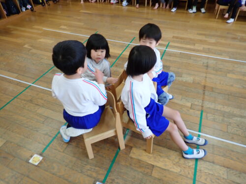 椅子取りゲームでは、にじ組さんとこだま組さん一緒に行いました![]()