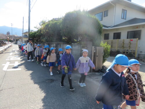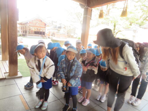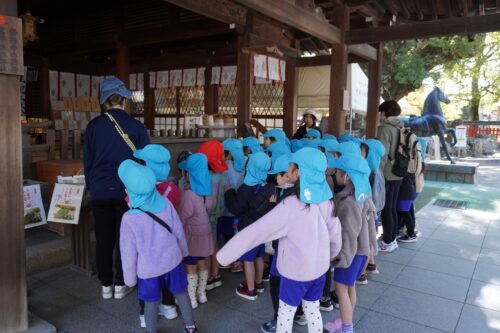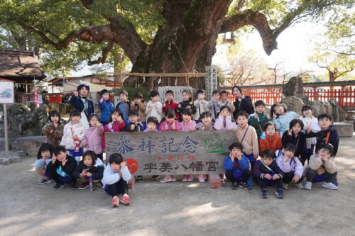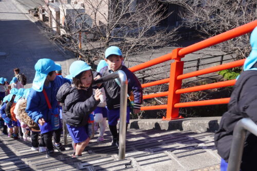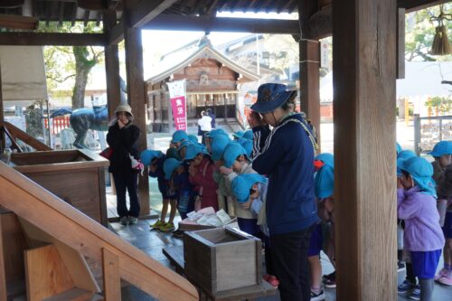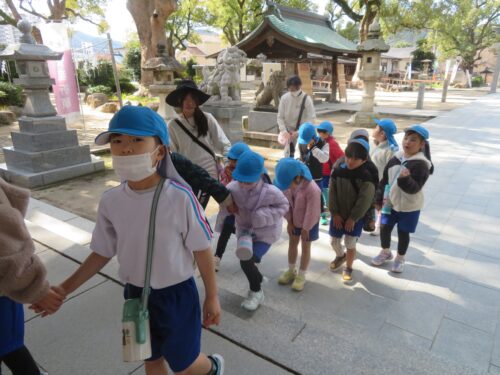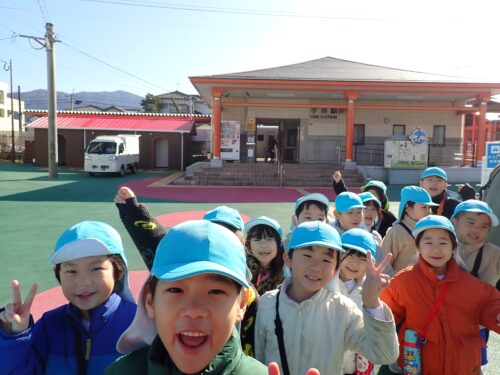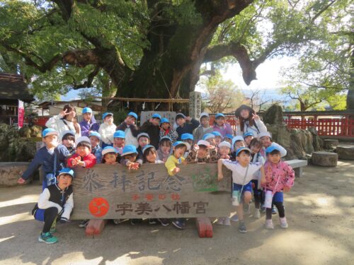 2月17日に にじ1組、2月26日に にじ2組が電車に乗って、宇美八幡宮まで行きました