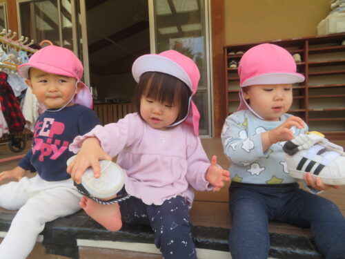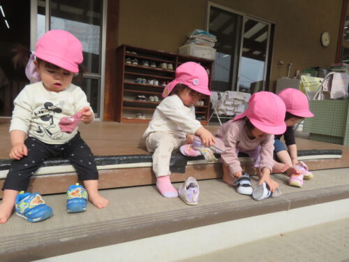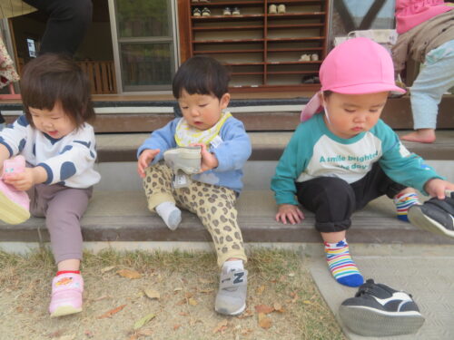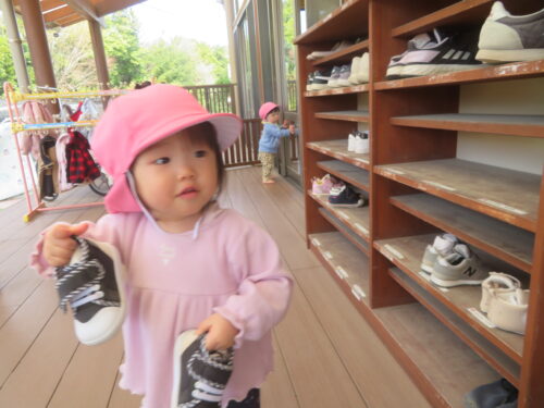 自分の靴を「これ!」「あった~!」と持ってきています![]()