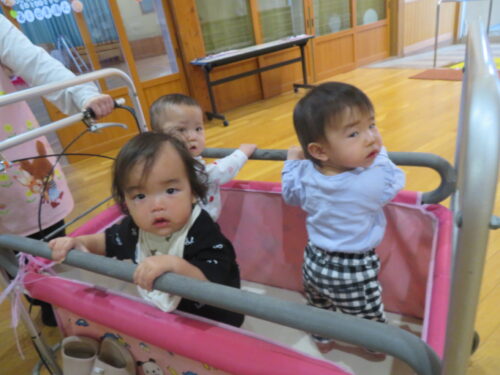 小さいお友達はカートに乗ってお散歩を楽しんでいます![]()