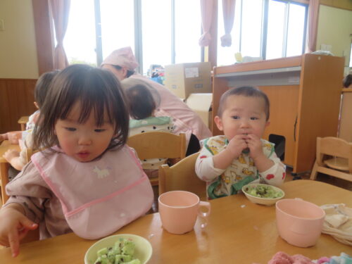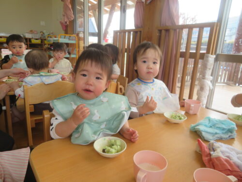 口を大きく開けて「あーむ!」「美味しいな~![]()