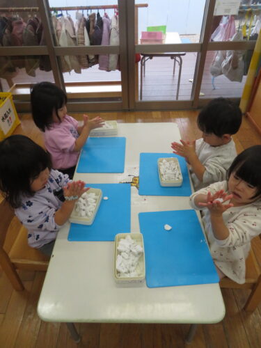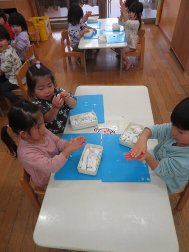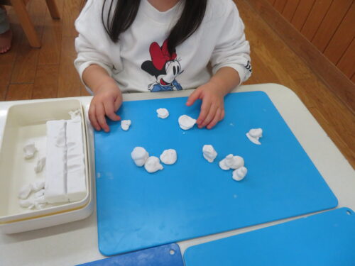 両手でしっかりと丸めて、小さなおもちが沢山出来上がっていました![]()