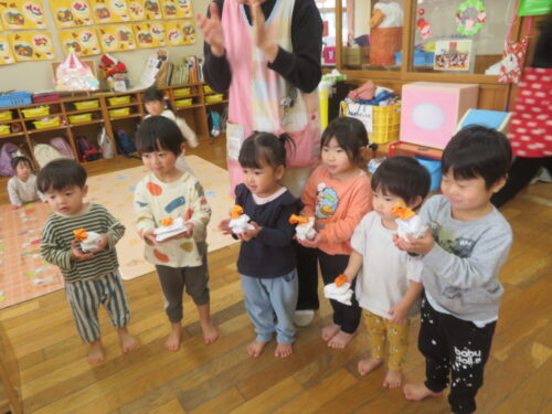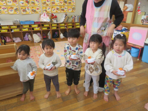 子ども達の作ったかわいい鏡餅はお家に飾ってもらえましたでしょうか?![]()