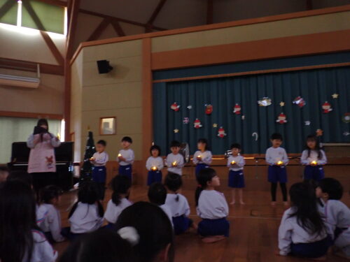 キャンドルを持っているお友だちは少しドキドキしているようです。