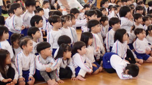 子どもたちはサンタさんの姿を見るなり立ち上がっていました![]()