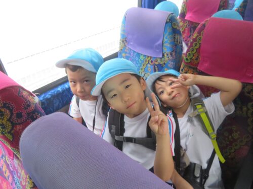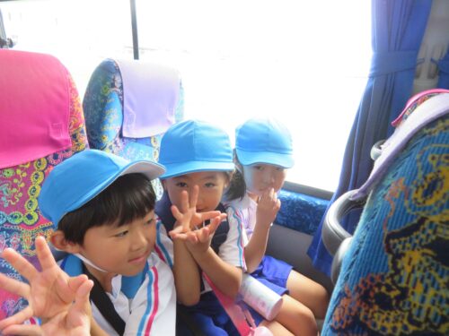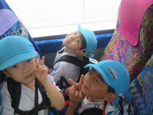 バスの中では、朝の会をしてみんなで「わたしは誰でしょう?」クイズやなぞなぞをして過ごしました![]()