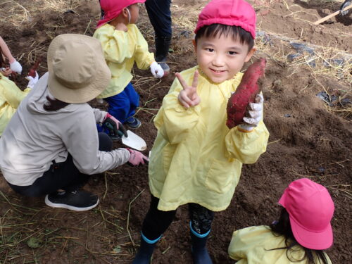 にじ組のお友達はれいんぼー幼児園での最後の芋ほり🍠でした!