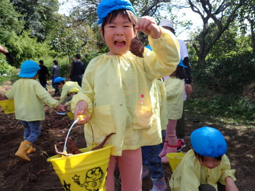 根が深くて一緒に協力してほっている姿、友達と大きさを比べてたり