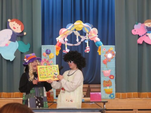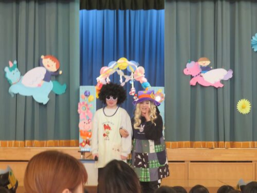 先生達からの出し物は「モッピーとナッピーによるマジックショー」でした![]()