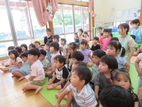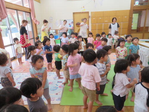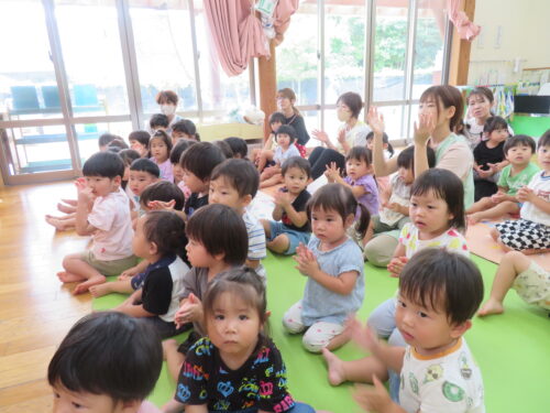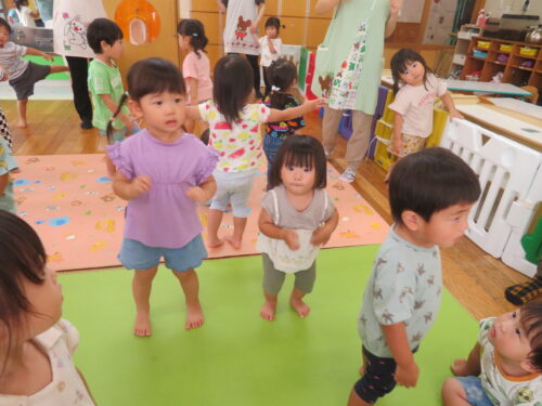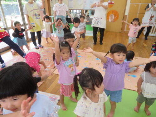 「はーい!」の声が聞こえてきたり、先生のまねっこを一生懸命する姿がとてもかわいかったです