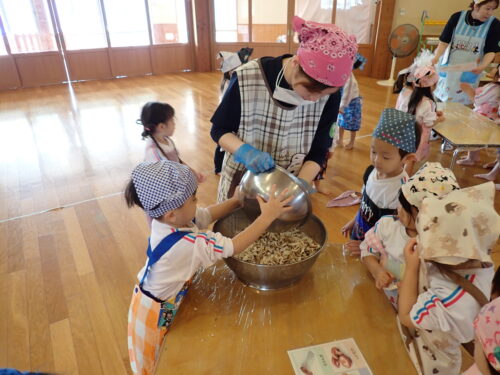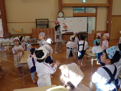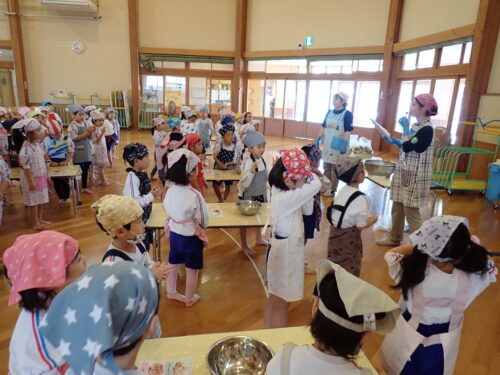 手をきれいに洗って、ホールに集まったらいよいよクッキングスタートです🎵