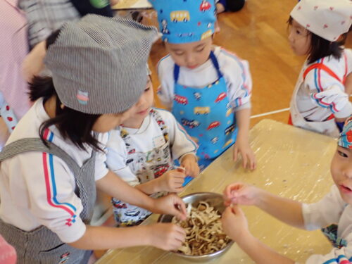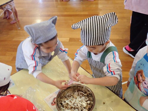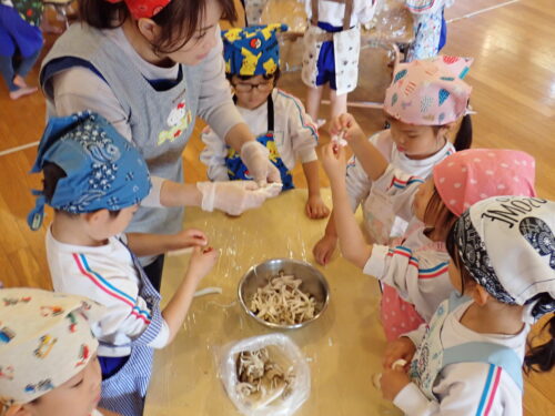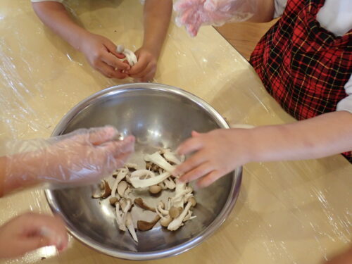 いつもは少しきのこが苦手なお友達も、「おいしい!」と嬉しそうに食べていました🥰