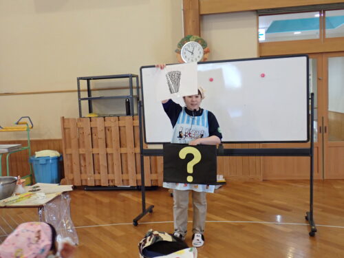 「次はちょっとむずかしいよ~!?この形はなんのきのこかな~~??」