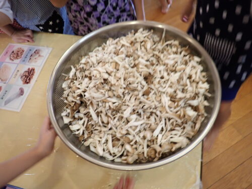 みんなが小さくしてくれたきのこは、給食のきのこのお味噌汁に入ります🥢