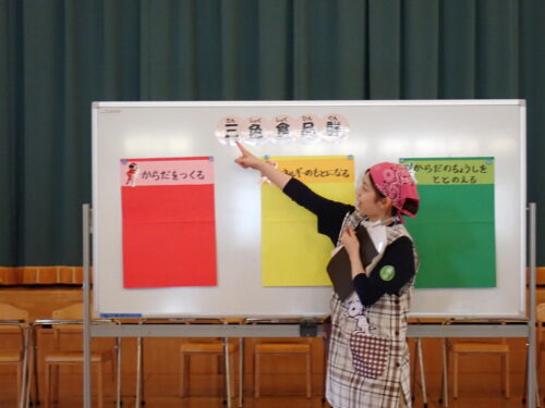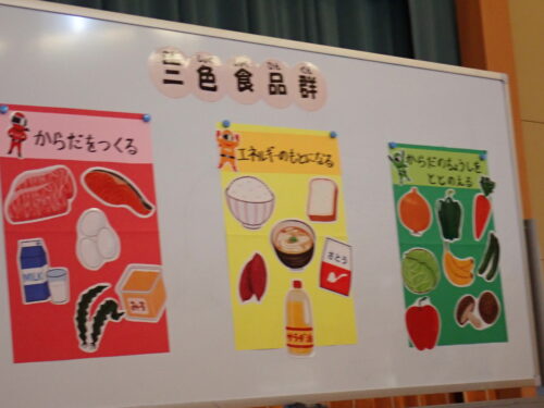 どれか一つだけではなく、三色全部揃えて食べることが大切だね!元気に過ごすために、給食も残さずに全部食べようね!」