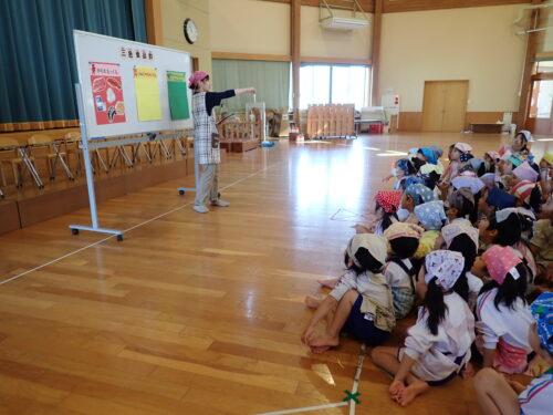 そして今回、にじ組さんにはきのこ割きが終わったあとに三色食品群のお話をしました🗣️