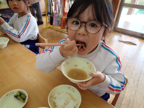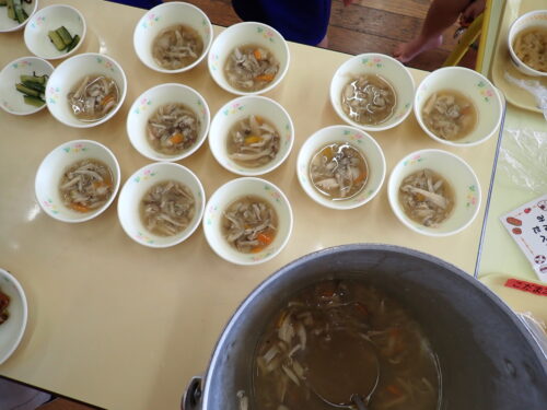 みんなが割いてくれたきのこは、おいしいきのこみそ汁になりました🙌