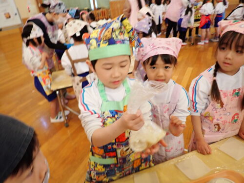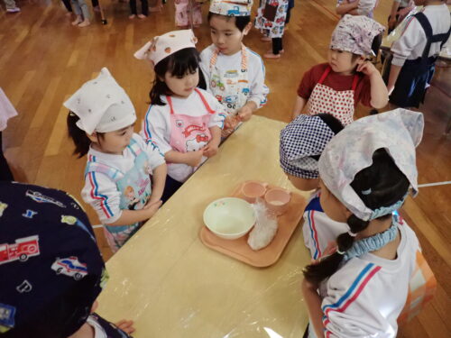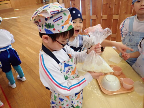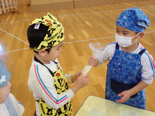 牛乳を入れる係、袋を入れやすいように広げる係、同じグループのお友達と役割分担をして、協力して作業ができていましたよ☺️