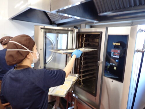 みんなが作ったクッキー生地は、給食室のオーブンで焼きます🙌🏻