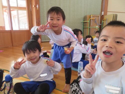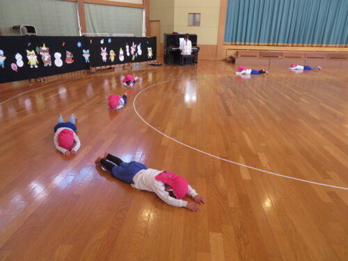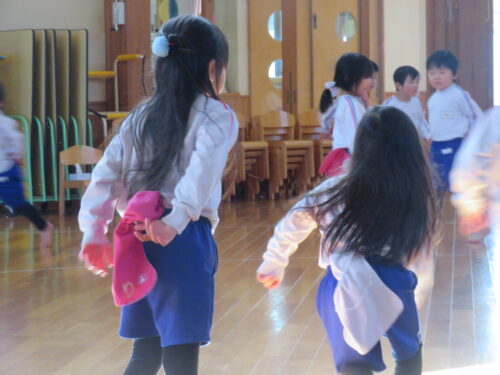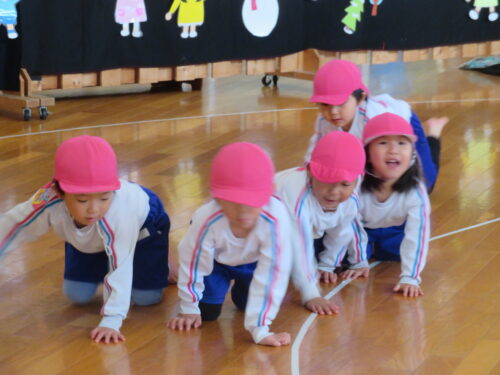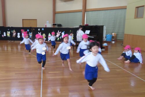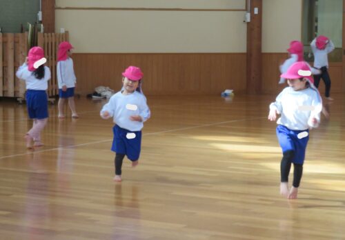 さくらんぼリズムを楽しんだ後は鬼ごっこをしました。