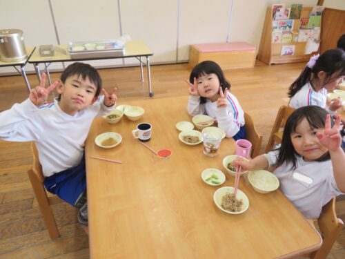 た~くさん遊んだ後は待ちに待った給食