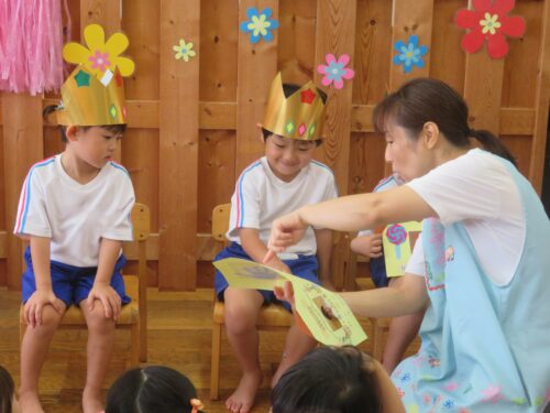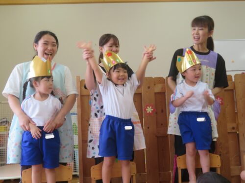 昨日行われた、こだま・そら・にじ組の10月生まれのお友達の誕生会の様子を紹介します