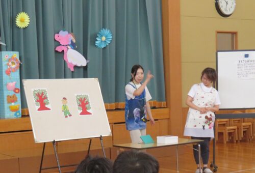 最後に先生達からの出し物です!今回は「素敵な帽子屋さん」のパネルシアターを見ました👒